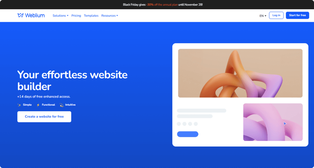 🎁 Weblium Black Friday Offer: Get 30% off any annual Weblium plan, including switching from a monthly to a yearly subscription.