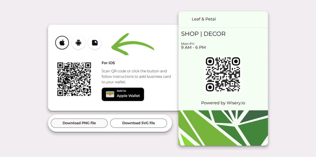 With Wisery, you can take full advantage of this flexibility, choose the format you want your card to have, whether PDF, JPEG, or even ready for Google or Apple Wallet.